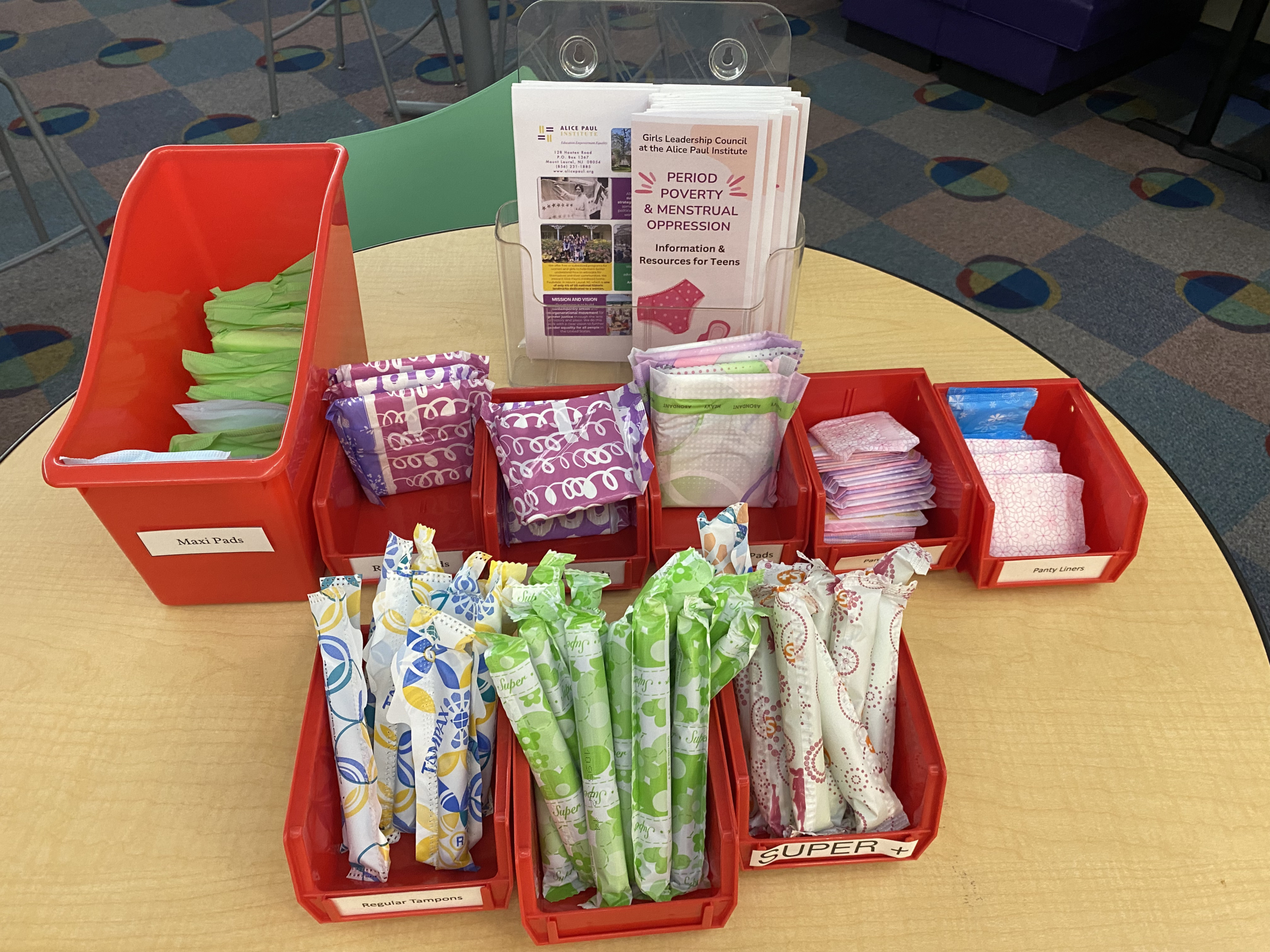 To combat the problem, the Cherry Hill library partnered with the Alice Paul Institute’s Girls Leadership Council in 2023 to create a period pantry for teen patrons. Jasmine Riel is a teen librarian who helped set that up.