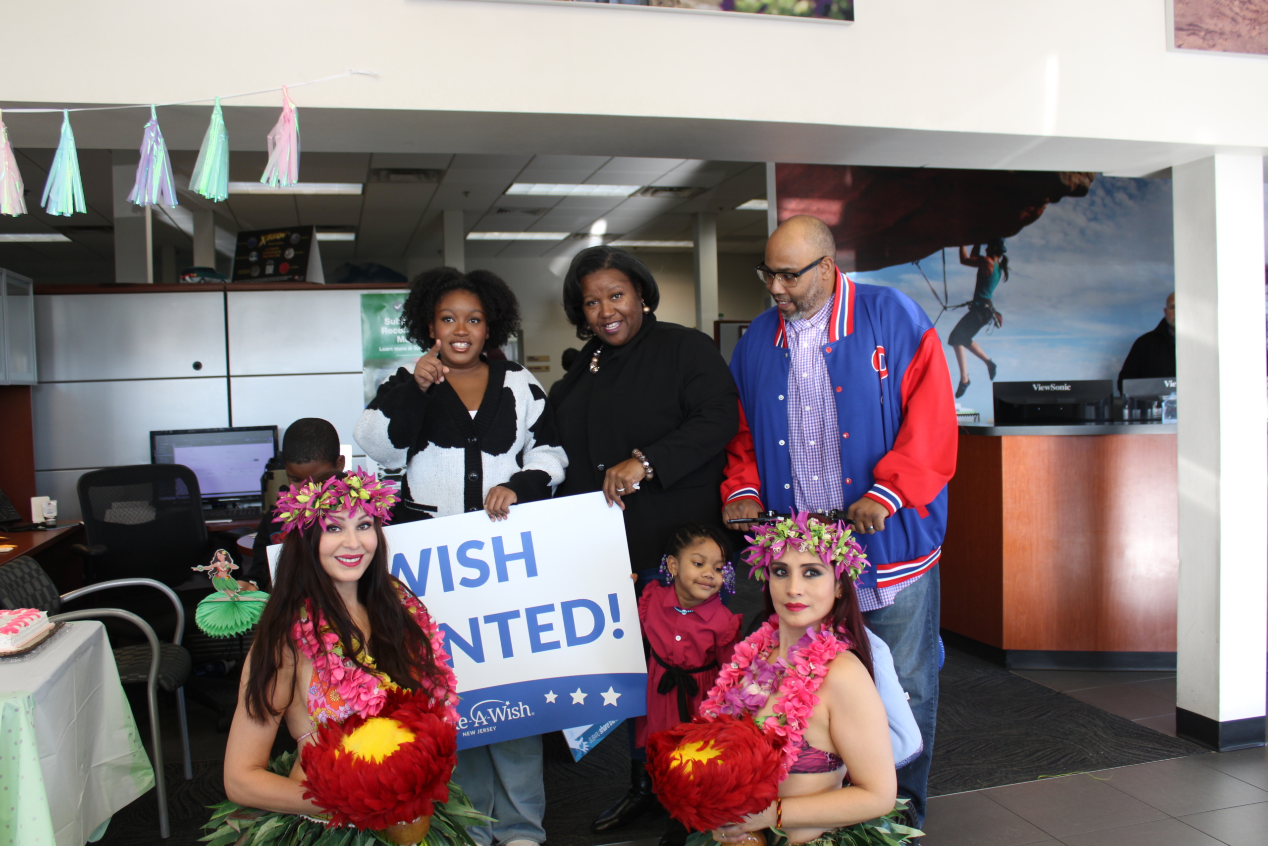 Green, white and gold balloons were hanging from the ceilings and there were two Polynesian dancers presenting the traditional Hawaiian Luau Hula dance. The dealership and Make a Wish New Jersey came together to surprise 16-year-old Jaelyn Koon with her wish to travel to Hawaii with her family.